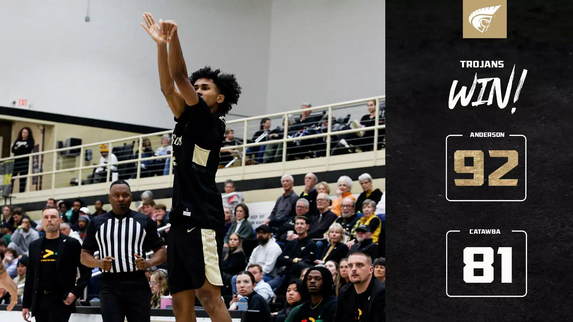 SALISBURY, N.C.—The Anderson University men’s basketball team started the season’s home stretch, handing Catawba its first home loss this season on 92-81 Wednesday night at Goodman Arena.