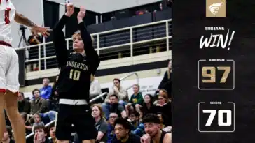 No. 5 Anderson (22-1, 16-1) is three games in the lead of the South Atlantic Conference and will play at Lincoln Memorial on Saturday. The Trojans beat the Railsplittes by 22 in their matchup in December.