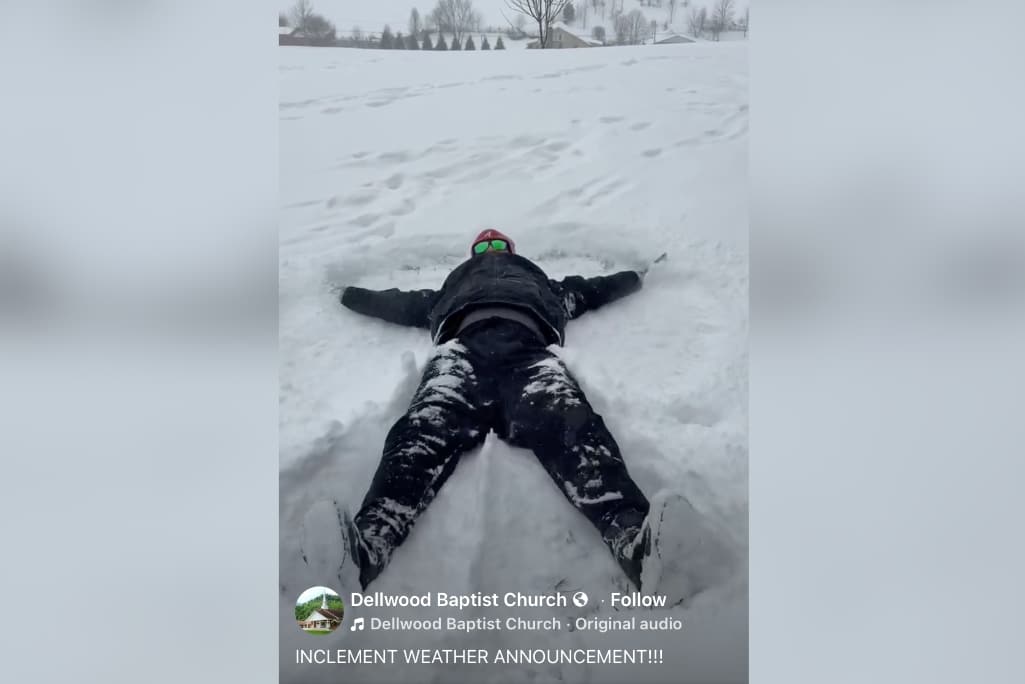After announcing the worship service cancellation in a video posted to Dellwood Baptist Church’s Facebook page on Jan. 31, Rogers challenged his two associate pastors — Shawn Porter and J.D. Grant — to post videos of themselves making snow angels.