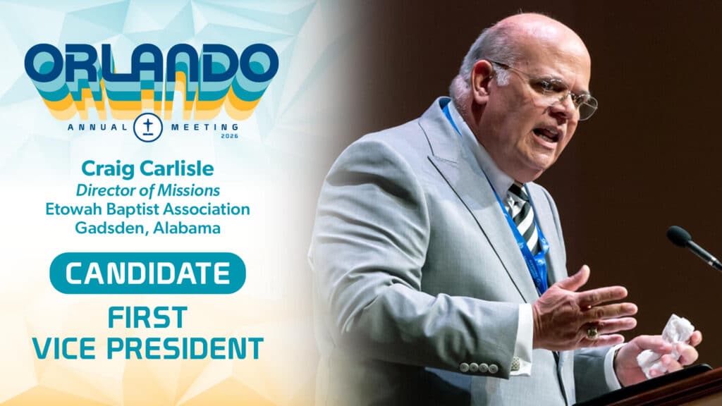Alabama’s Craig Carlisle will be nominated for first vice president of the Southern Baptist Convention in June when messengers meet in Orlando.
