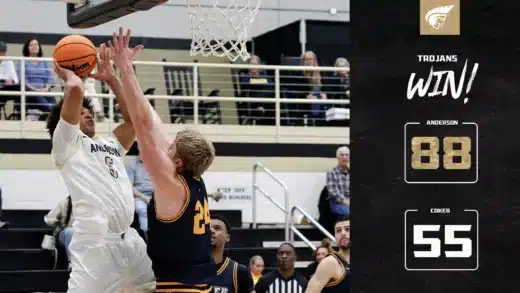 ANDERSON— Anderson continued its elite winning ways on Saturday with another dominant performance, this time a 73-60 victory over Wingate at Abney Athletic Center. After a back and forth opening eight minutes, the Trojans 16-2 run aided the eight-point... Continue Reading »